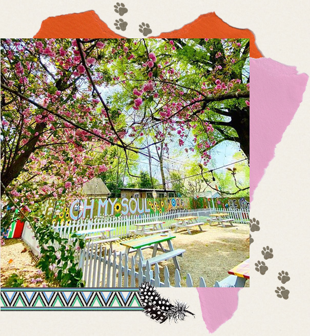 Visit our amazing outdoor bar & patio with a 100-year-old oak tree, craft cocktails, local beer, South African wine, and live music! Pets welcome!